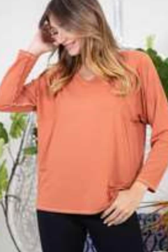 This basic v neck, long sleeve top is the perfect addition to any wardrobe. Pair it with your favorite jeans or pants to complete the look