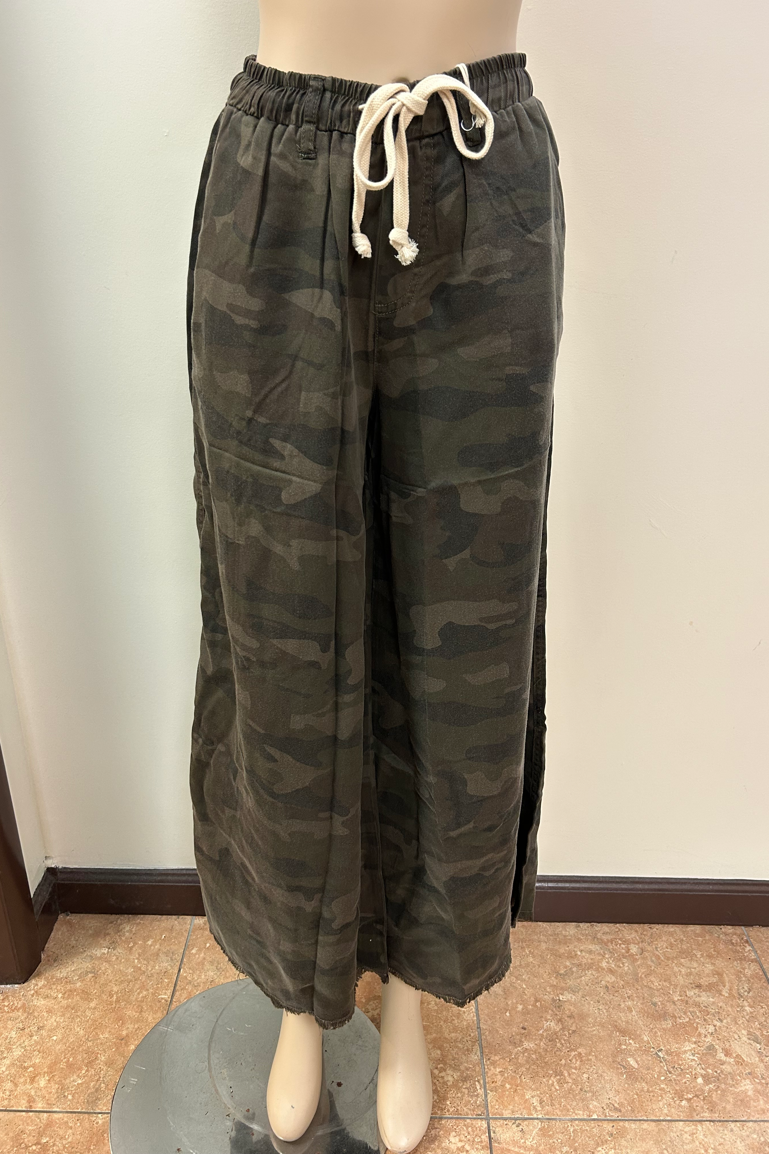 Camo Tencel Wide Leg Pants