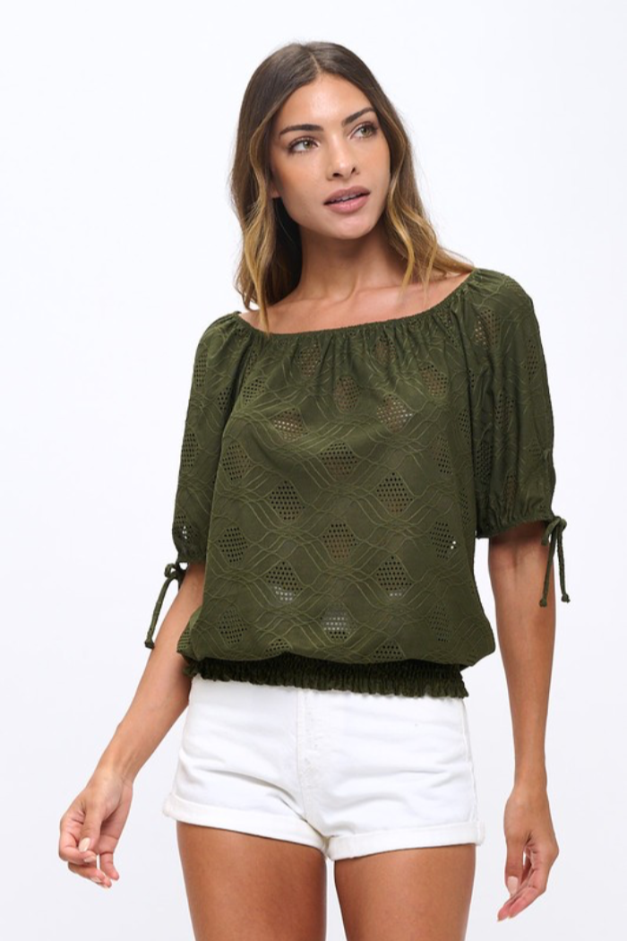 Eyelet Smocked em Top