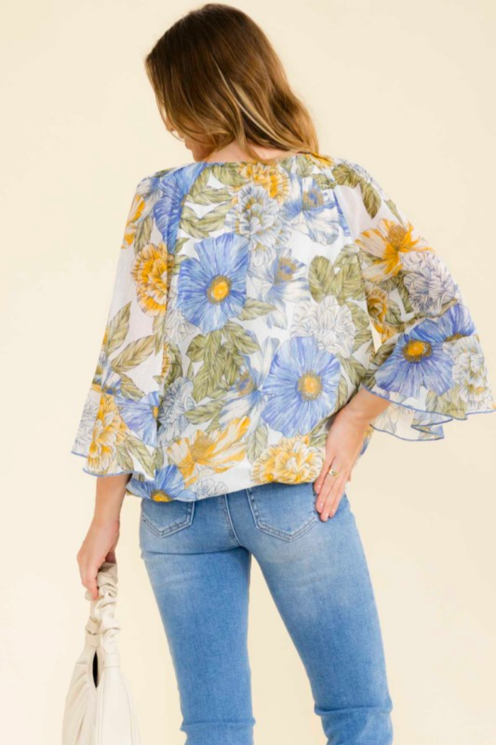 Metallic Bell Sleeve Peasant Top