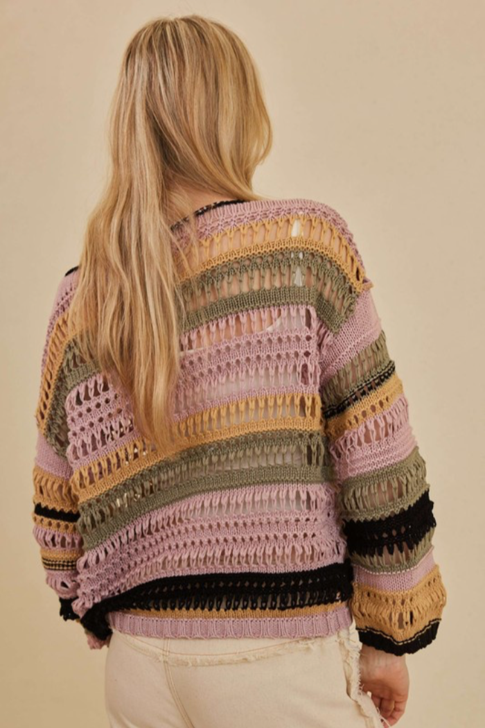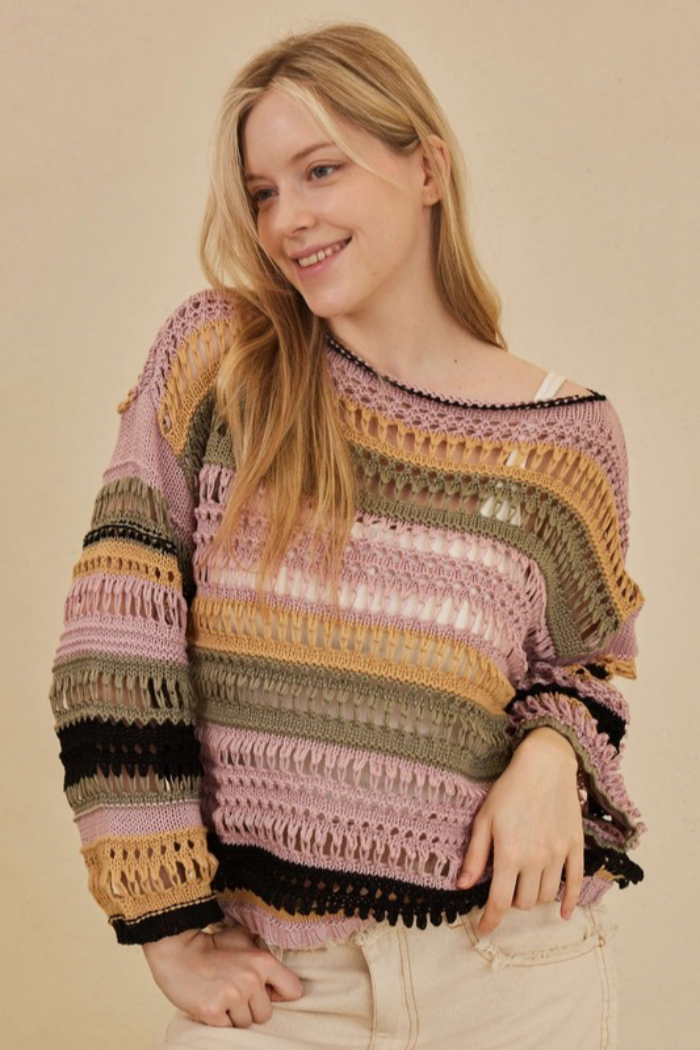 Striped Open Weave Sweater